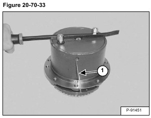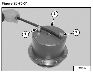 Install a cap and fitting (Item 1) in both ports. Use a bar between the fittings and turn the cover (Item 2) [Figure 20-70-31].