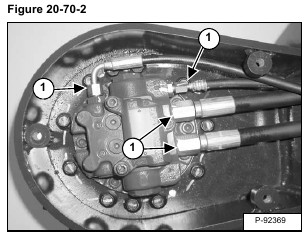 Remove the hoses (Item 1) [Figure 20-70-2] from the travel motor.