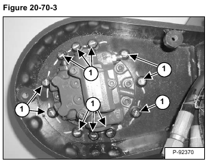 Remove the bolts (Item 1) [Figure 20-70-3] from the travel motor.