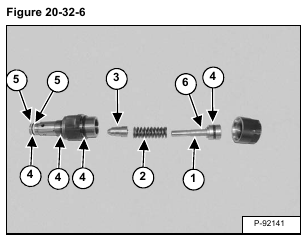 Remove the spool (Item 1), spring (Item 2) and poppet (Item 3). Remove the O-rings (Item 4) and back-up rings (Item 5) [Figure 20-32-6].