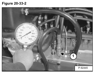 Install a 6894,8 kPa (68,9 bar) (1000 psi) gauge on the diagnostic port (Item 1) [Figure 20-33-2].