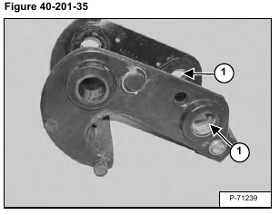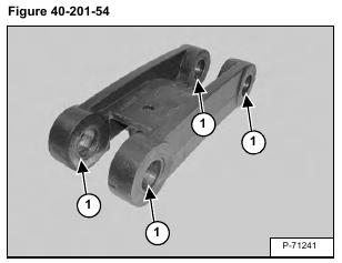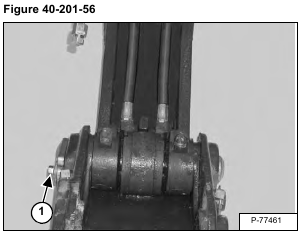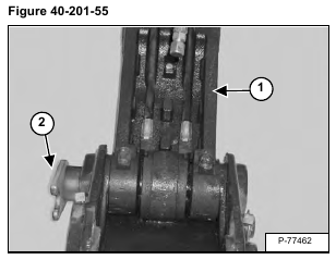 Install the bucket link (Item 1) and pin (Item 2) [Figure 40-201-55].