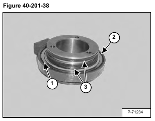 Install the O-ring (Item 1) wear ring (Item 2) and seals (Item 3) [Figure 40-201-38].