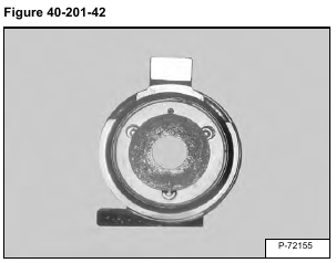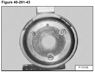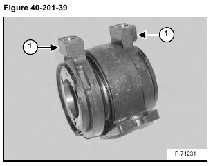 Apply inward pressure on the piston and install the retaining ring (Item 1) [Figure 40-201-34].