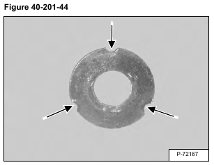 NOTE: The notches in both washers must be aligned with the screw holes on the swivel assembly [Figure 40-201-48].