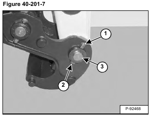 Remove the two nuts (Item 1) and bolt (Item 2). Remove the pin (Item 3) [Figure 40-201-7].