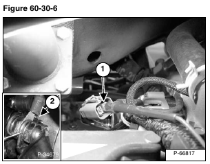 Check the continuity between the โSโ terminal (Item 1) [Figure 60-30-6] and the positive (+) terminal on the battery or starter terminal (Item 2) [Figure 60-30-6]. There should be continuity. If no continuity, replace wire harness.