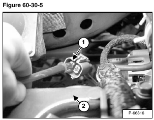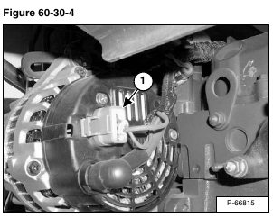 Turn engine OFF and remove the L & S terminal connector (Item 1) [Figure 60-30-4] off the alternator.