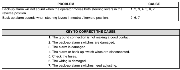BOBCAT S130 – BACK-UP ALARM SYSTEM – Troubleshooting (Standard and ACS)