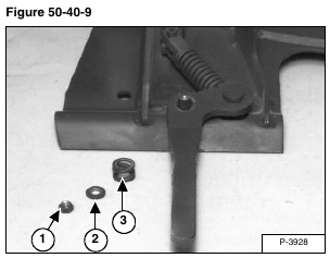 Remove the lever mounting bolt and nut (Item 1), washer (Item 2) and spring (Item 3) [Figure 50-40-9].