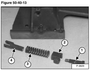 If the bolt (Item 1), handle pivot (Item 2), spring (Item 3) or clevis (Item 4) are damaged, put the assembly in the vise. Loosen and remove the bolt (Item 1) [Figure 50-40-13] with a 5/16 inch allen wrench.