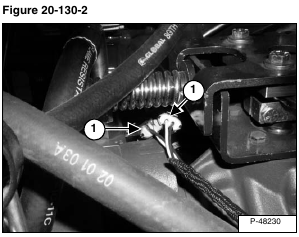Disconnect the power Bob-Tach harness from the solenoid connectors (Item 1) [Figure 20-130-2] by the hydraulic pump.