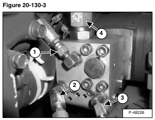 Disconnect the hose (Item 3) [Figure 20-130-3] from the power Bob-Tach cylinder base end fitting on the block.