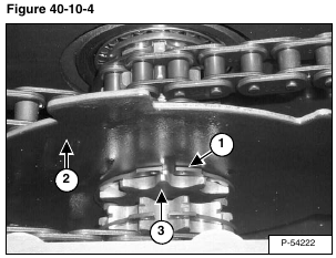 Remove the snap ring (Item 1) from the end of the sprocket (Item 2) [Figure 40-10-4] on the hydrostatic motor carrier.