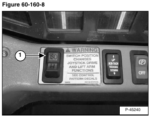 Place the loader Control Pattern Switch (Item 1) [Figure 60-160-8] in the ISO position.