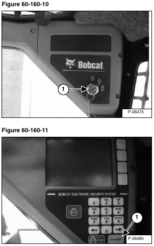 Turn the key (Item 1) [Figure 60-160-10] to the RUN position or press the RUN/ENTER button (Item 1) [Figure 60-160-11] for power, without starting the loader.