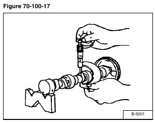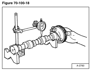 Put the camshaft in V-blocks. Install a dial indicator [Figure 70-100-18].