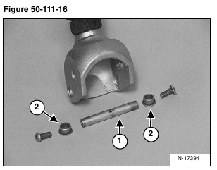 Remove the handle sleeve (Item 1) and bushings (Item 2) from the handle [Figure 50-111-16].