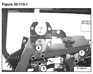 Remove the control lever (Item 3) [Figure 50-110-1] by sliding the lever through the rubber boot (Item 1) [Figure 50-110-2] on the front of the control panel.