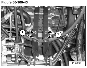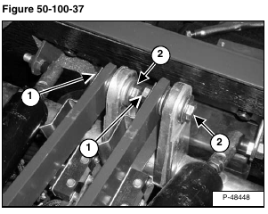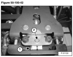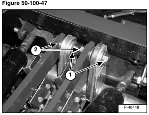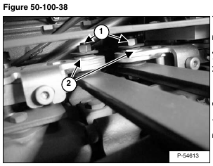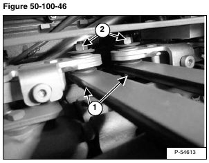 Tighten the two bolts (Item 1) and nuts (Item 2) to 35 – 40 ft.-lb. (47,5 – 54,2 N•m) [Figure 50-100-46].