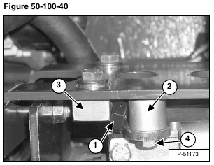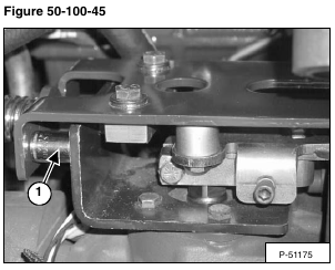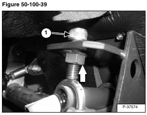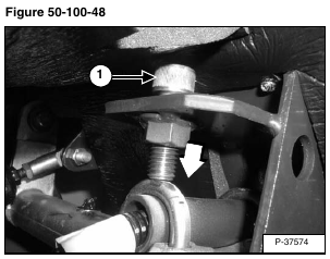 Before adjusting the linkage, check that the base pintle arm mounting bolt (Item 1) and both of the upper pintle mount bolts (Item 2) [Figure 50-100-42] are tighten to 35 – 40 ft.-lb. (48 – 54 N•m) torque. There should be no play between the pintle arm and the square pump shaft.