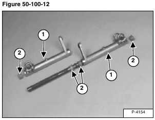 Disassemble the right and left steering bellcranks (Item 1) from the cross shaft assembly [Figure 50-100-12].