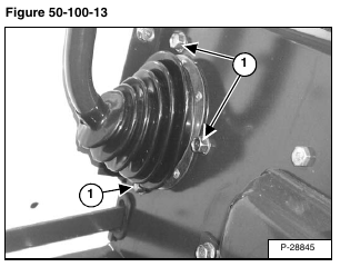 To remove the steering shaft mounting bracket (Item 3) [Figure 50-100-11], remove the three mounting bolts (Item 1) [Figure 50-100-13] from the front of the control panel.