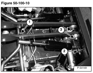 Remove the mounting nut (Item 1) [Figure 50-100-10] from the end of the shock connected to the steering linkage.