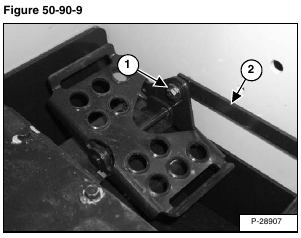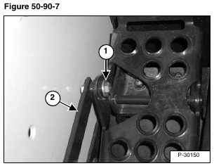 Remove the bolt and nut (Item 1) to disconnect the tilt pedal linkage (Item 2) [Figure 50-90-9] from the pedal.