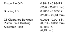 Calculate the oil clearance. If the clearance exceeds the allowable limit, replace the bushing. If it still exceeds the specifications, replace the piston pin.