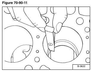 Install a piston ring into the lower part of the cylinder bore. Measure the ring gap with a feeler gauge [Figure 70-90-11].