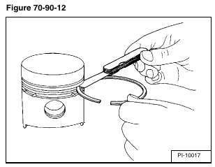 Remove the carbon from the ring grooves. Measure the clearance between the ring and groove with a feeler gauge [Figure 70-90-12].