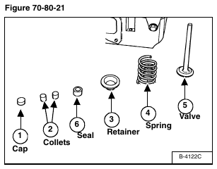 Remove the valve spring retainer (Item 3) and the spring (Item 4) [Figure 70-80-20] & [Figure 70-80-21].