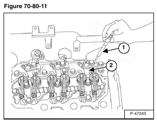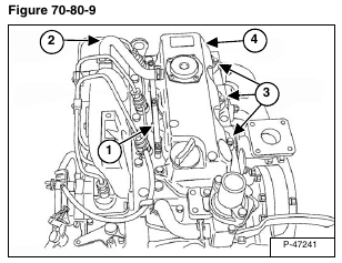 Remove the glow plugs (Item 1) and fuel injector holder assemblies (Item 2) [Figure 70-80-11].