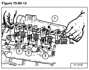 Remove the rocker arm bolts and remove the rocker arm assembly (Item 1) [Figure 70-80-12].