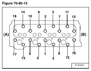 Remove the cylinder head bolts in order of #18 to #1 [Figure 70-80-15].