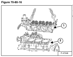 Remove the cylinder head (Item 1) and gasket (Item 2) [Figure 70-80-16].