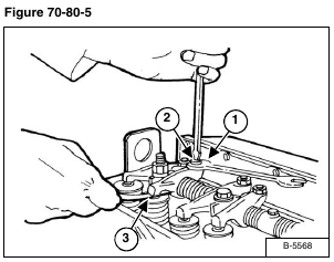 NOTE: The clearance is measured between the rocker arm and valve stem tip (Item 3) [Figure 70-80-5].