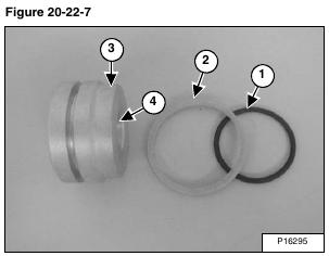 Remove the O-ring (Item 1), and seal (Item 2) from the piston (Item 3) [Figure 20-22-7].