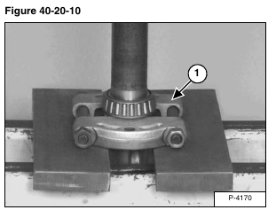 Put the axle/outer bearing assembly in the bearing puller as shown and put in the hydraulic press [Figure 40-20-10].
