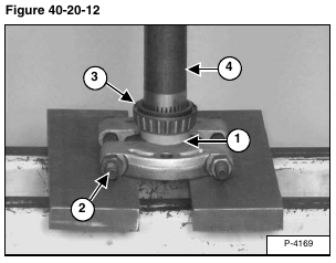 Put the spline end of the axle shaft (Item 4) [Figure 40-20-12] in the bearing and press the bearing onto the axle.