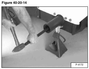 Hit the long rod with a hammer to remove the bearing cup from the axle tube [Figure 40-20-14].