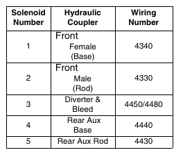 The Hydraulic Pressure Release Button will activate solenoid number 3 at the diverter valve, shut down the loader, and bleed the rear auxiliary (If so equipped.) and also the right side front auxiliary. (If so equipped.)