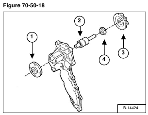 Press the shaft (Item 2) and impeller (Item 3) [Figure 70-50-18] out the impeller side of the water pump.