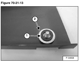 Remove the fiber washer (Item 1) and washer (Item 2) [Figure 70-21-13] from the pivot bolt.