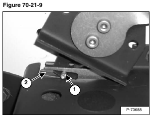 Installation: When installing the hand speed control, be sure the speed control lever and pin (Item 1) fit in the notch (Item 2) [Figure 70-21-9] of the speed control rod clevis..