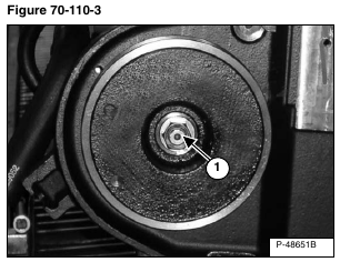 Remove the hydrostatic pump drive pulley mounting nut (Item 1) [Figure 70-110-3] and washer.