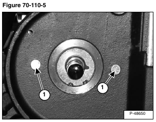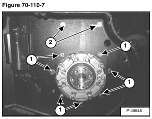 Remove the two mounting bolts (Item 1) [Figure 70-110-5] from the drive belt housing which mount the hydrostatic pump to the housing.