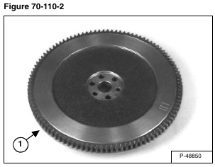 The ring gear (Item 1) [Figure 70-110-2] on the flywheel is an interference fit. Heat the ring gear enough to expand the gear. Hit the ring gear evenly around the gear to remove it from the flywheel.