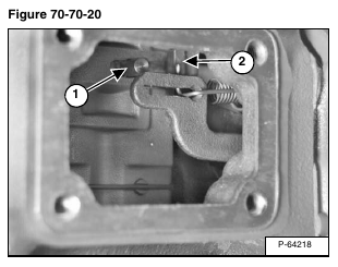 Ensure the control rack pin (Item 1) is to the left side of the fork lever (Item 2) [Figure 70-70-20].